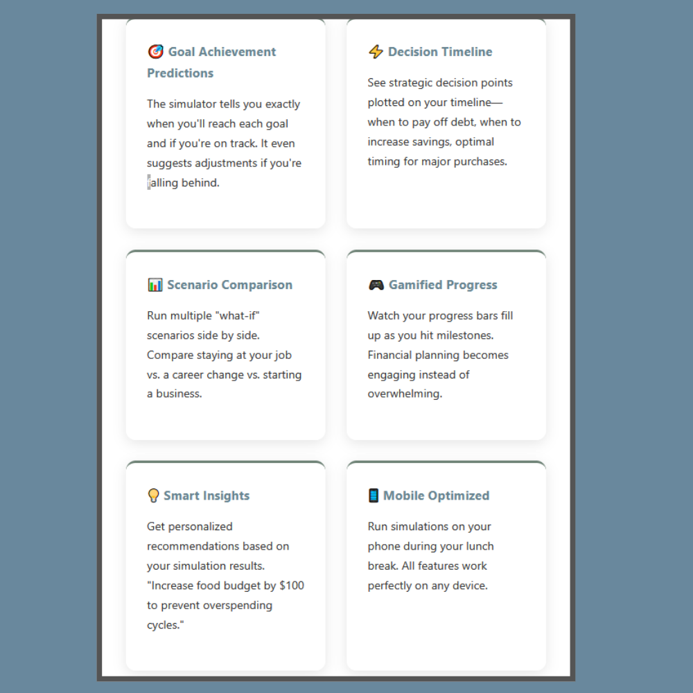 The Budget Life Simulator doesn’t just track your money; it predicts your financial future based on the decisions you make today.